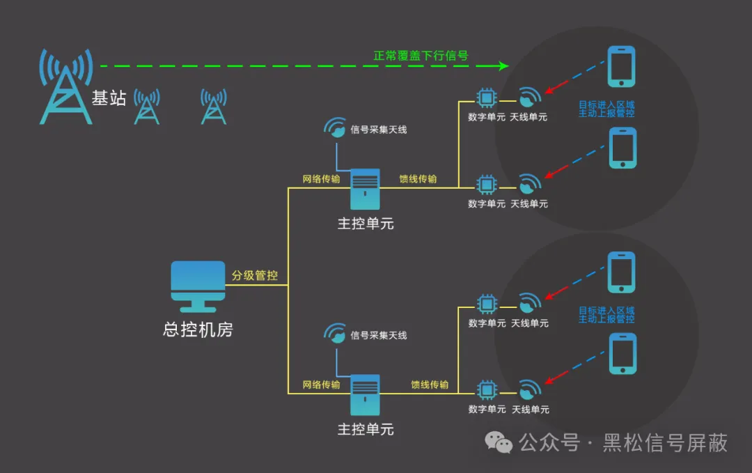 HS-206分布式智能屏蔽管控系统,是全国首家通过型号核准的分布式屏蔽系统。它解决了强信号源屏蔽无效与干扰周边环境的难题,与传统的信号屏蔽设备相比,该产品屏蔽更精准、辐射更环保、管理更高效。其支持国内所有手机通信频段的屏蔽干扰,全面覆盖2/3/4/5G移动通信,可以为各类多场景提供全方位的信号屏蔽解决方案。
