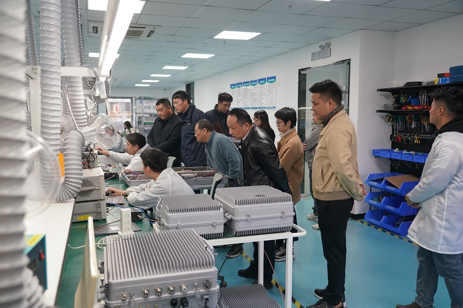 近日,省工业和信息化厅、市无线电管理局相关领导一行莅临黑松科技开展专题调研指导工作。此次调研聚焦国家重要考试考场手机信号屏蔽设备产业合规发展,通过实地考察、政策宣讲、座谈交流等形式,深入了解企业技术研发、产品合规化建设及市场应用情况,为企业高质量发展注入政策动能与专业指引。