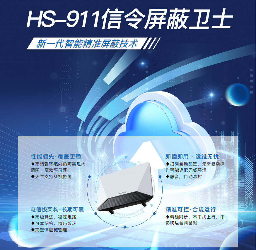 本公司推出的信令屏蔽卫士,是一款集成了新一代"信令阻断"技术的精准屏蔽一体化产品。该产品通过对基站信号进行智能分析并针对其薄弱环节进行精准干扰,大幅提升了屏蔽效率,能够在指定区域内有效遏制违规使用手机的行为,支持对多种不同制式的手机进行屏蔽。在屏蔽区域内,能够有效中断包括语音、数据和短信在内的各种通讯服务,适用于所有主要运营商,包括中国移动、中国电信、中国联通及中国广电。此外,该屏蔽器兼容多种网络制式,涵盖2G、3G、4G、5G以及WIFI和蓝牙。